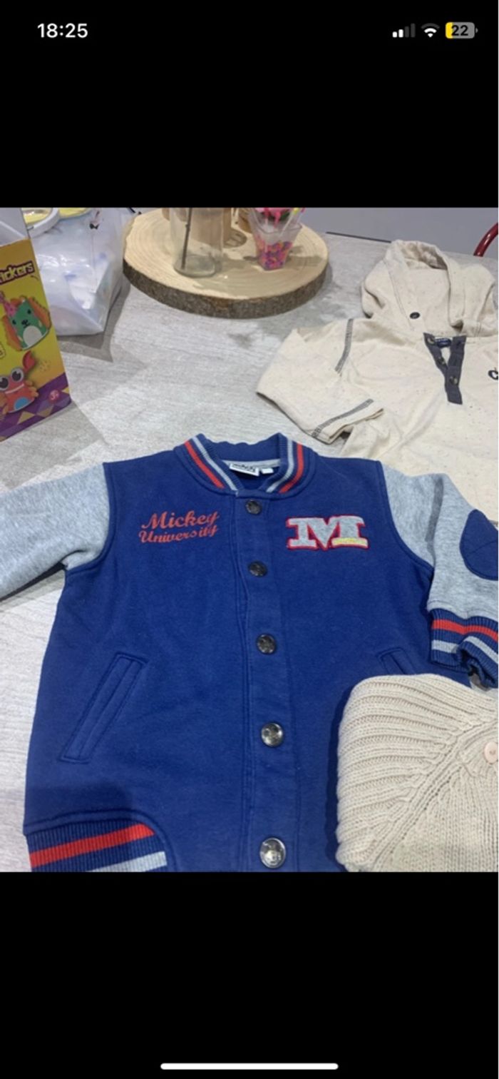Se composent : Un pull 3 tee shirts manches longues 1 gilet chaud 1 veste Mickey 2 gilets