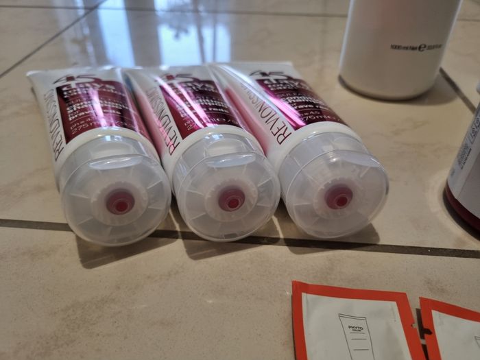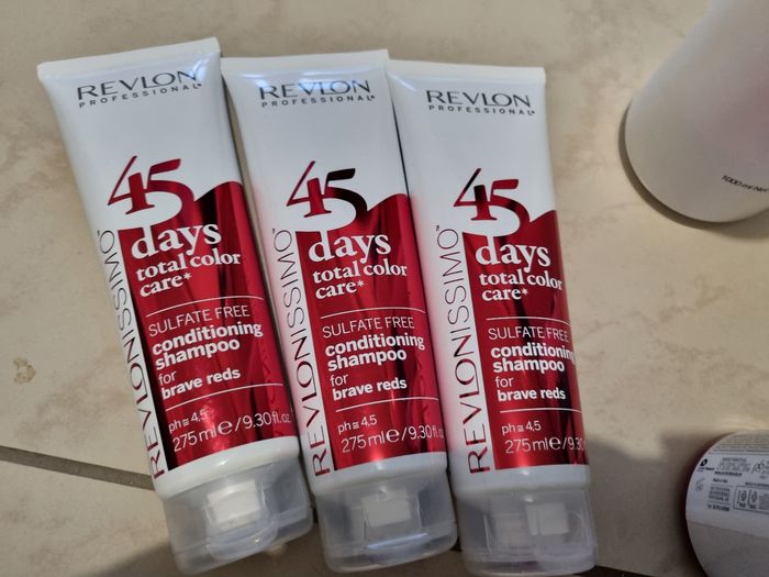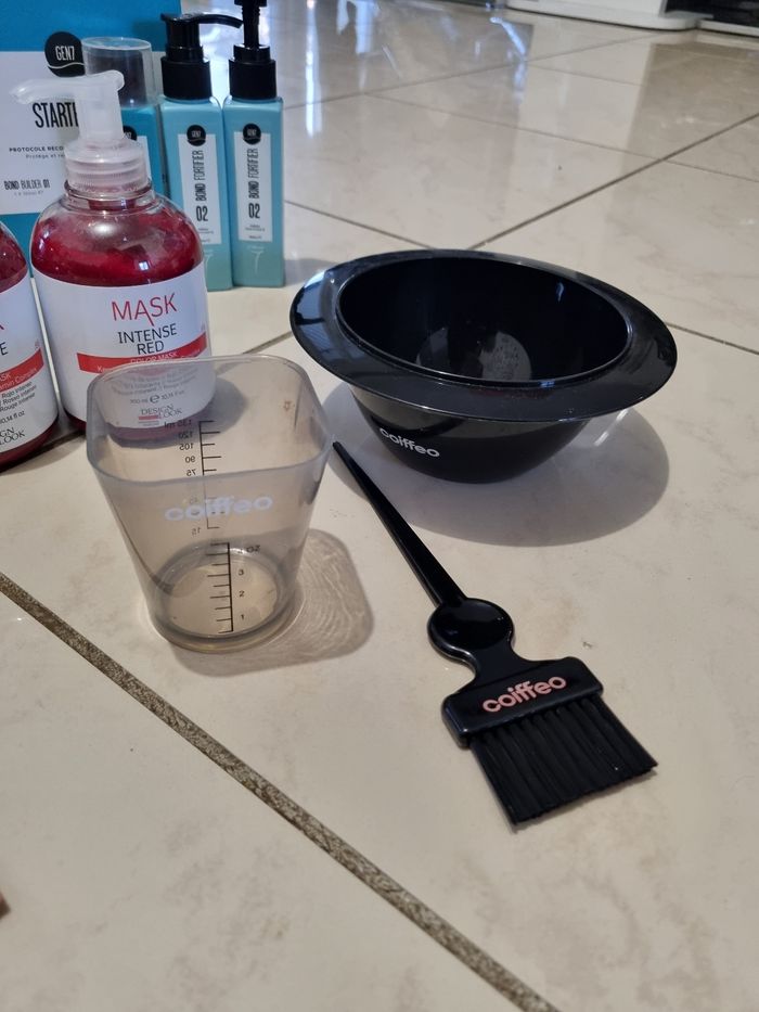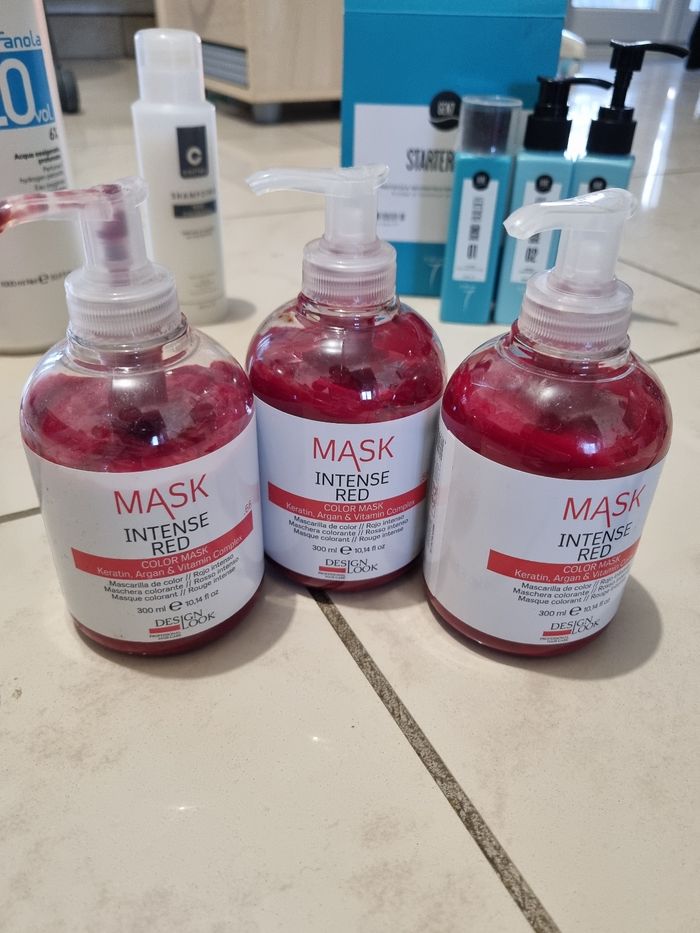 Lot de produits pour entretiens de coloration " rouge " ( seule le produit mask et pour le rouge ) le reste et pour l'entretien de la coloration quelques soit la couleurs. Il y a ce qu'il faut pour faire une coloration ( sauf la couleur ) et pour l'entretien shampoing... produit de qualité. Les produits sont pleins, servis 1 fois, dautres neuf.