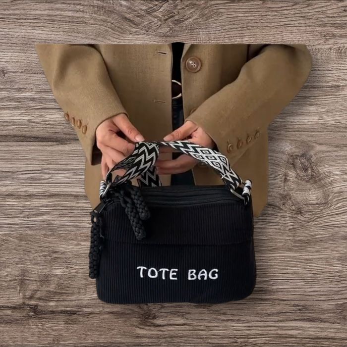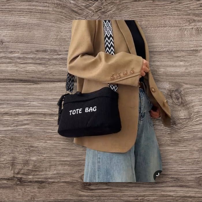 Sac bandoulière Tote Bag noir velours côtelé avec sangle bohème  - photo numéro 1