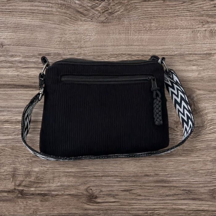 Sac bandoulière Tote Bag noir velours côtelé avec sangle bohème  - photo numéro 2