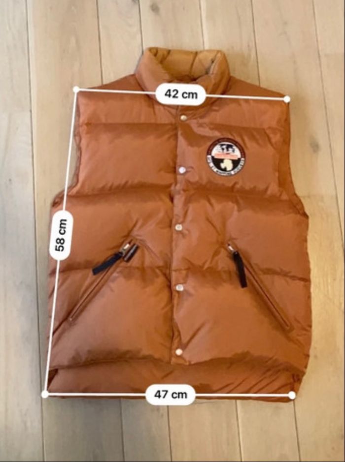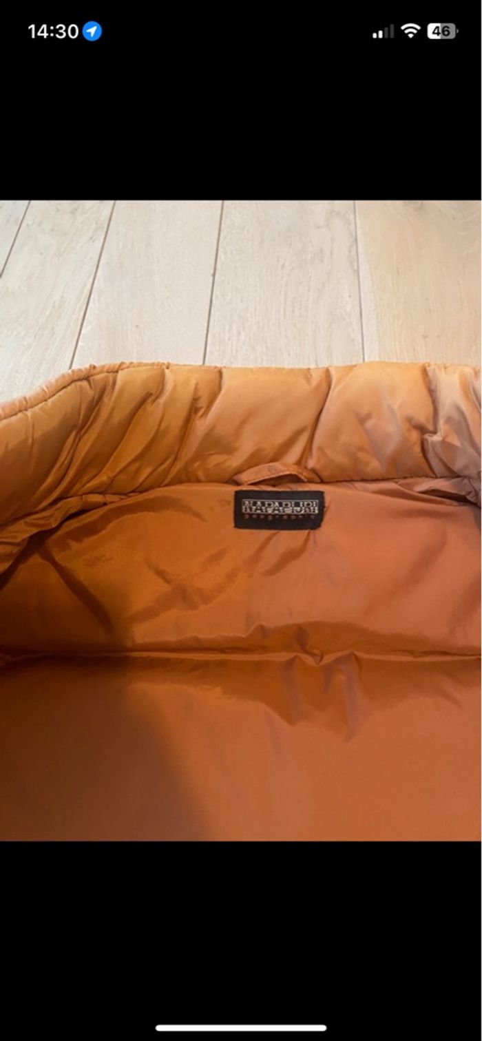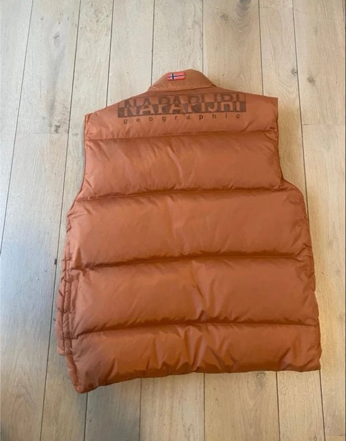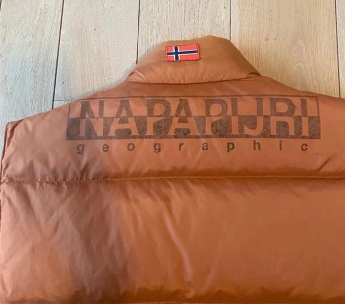 Belle doudoune sans manches napapijri Taille S Légère décoloration sur le tour de coup ainsi qu’un défaut de couture visible au niveau des étiquettes.