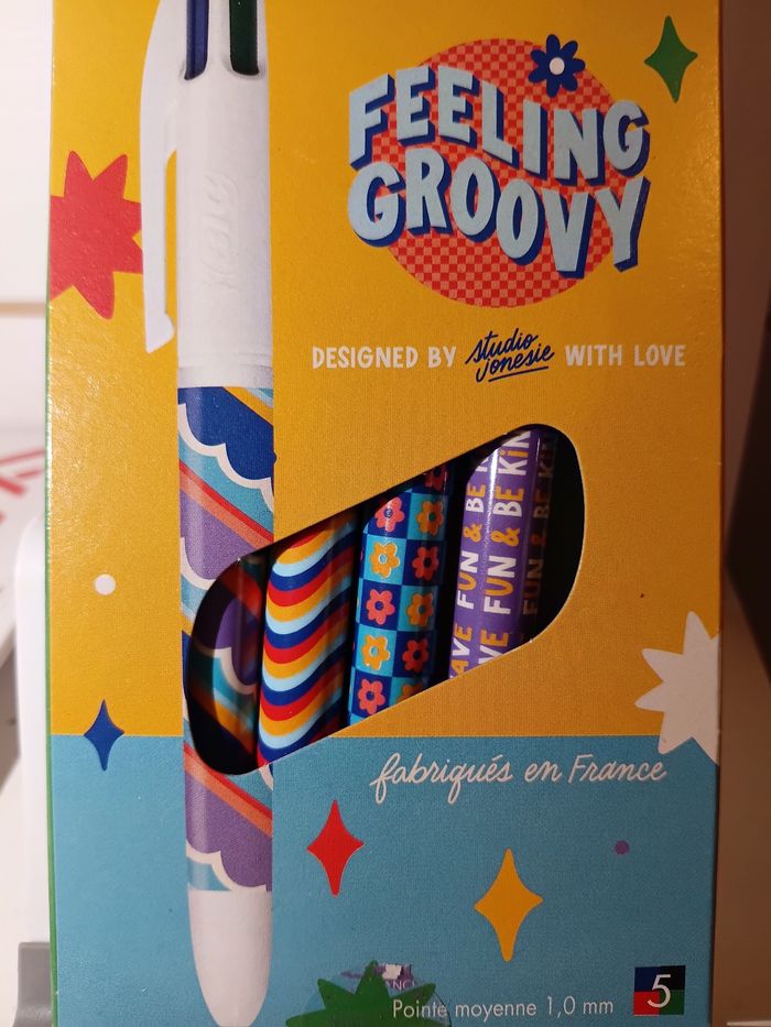 Boite 5 stylos BIC 4 colours  a collectionner- FEELING GROOVY- Neufs