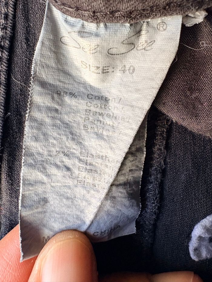 🖤 Pantacourt femme See See – Taille 40 – Noir – TBE 👖 Pantacourt femme 📏 Taille : 40 📐 Tour de hanches : 40 cm 📏 Longueur entre jambes : 67 cm 📏 Longueur totale : 92 cm 🎨 Couleur : noir ✨ Détail anneaux décoratifs en bas du pantacourt 👜 2 poches avant + 2 poches arrière 🏷️ Marque : See See 🧵 Matière : 98% coton, 2% élasthanne 🌿 Confortable, légèrement extensible et agréable à porter ☀️ Idéal pour la mi-saison ou l’été ✅ Très bon état (TBE) 📦 Envoi rapide 🚀 💸 Réduction sur les lots activée 🏷️ 👚 Dressing trié par # #pantacourt #taille40 #noir #seesee #coton #modefemme #tbe