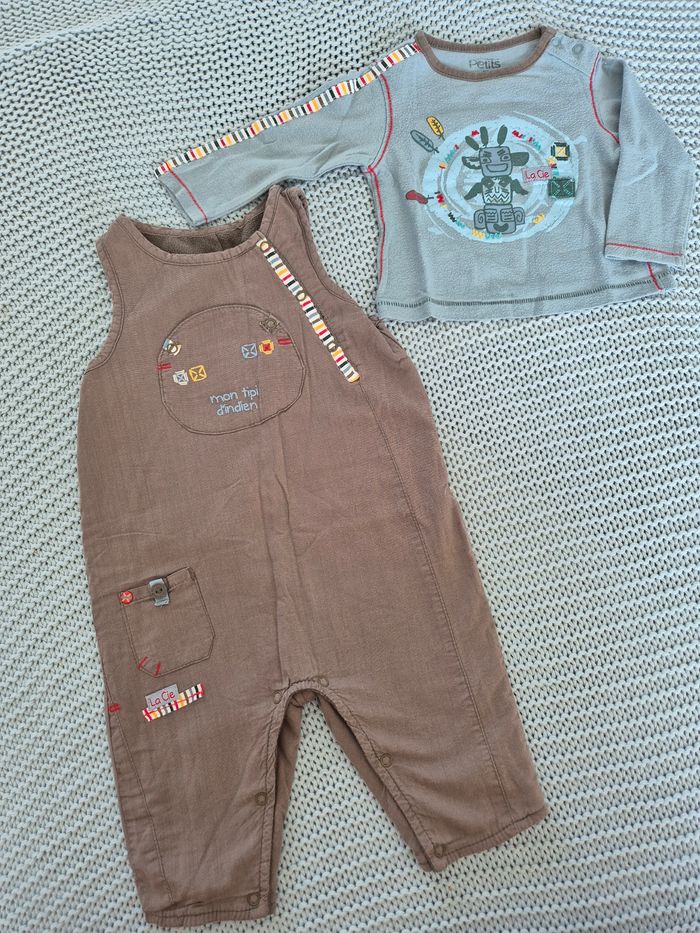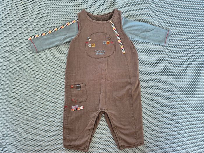 Ensemble composé d'une combinaison doublée taupe "Mon tipi indien" et du t shirt manches longues assorti avec dessin de totem. Marque La compagnie des petits. Taille 6 mois. #mimidacgarçon #mimidacgarçon6mois