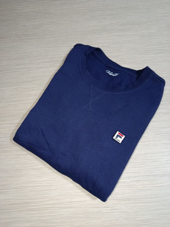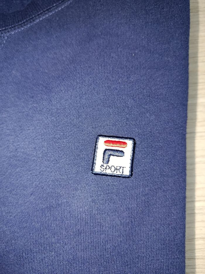 Pull vintage pour femme de marque Fila couleur bleu marine et logo brodé. Excellent état, très peu porté. Taille S Mesures en photos.