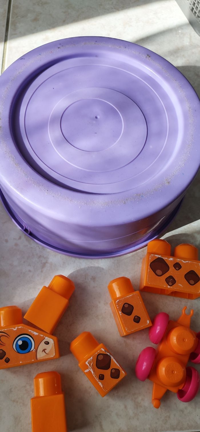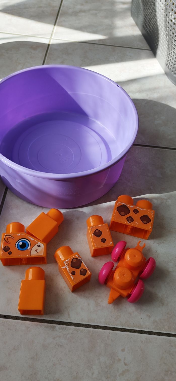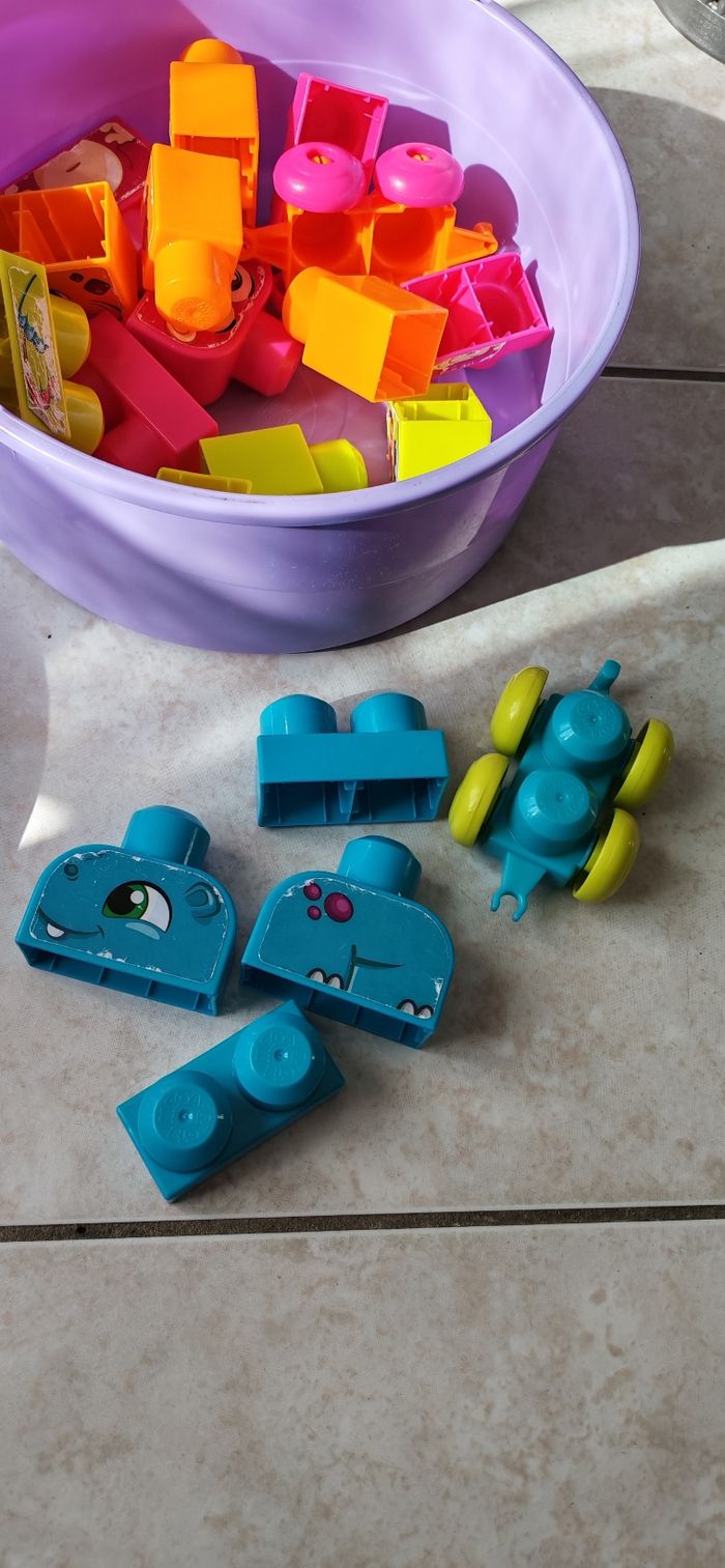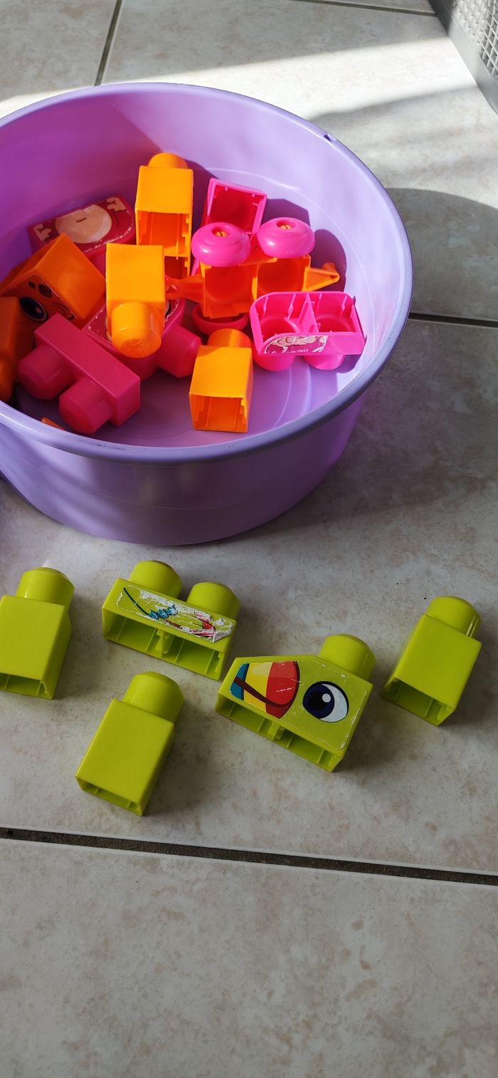 Éléphant mega blocks avec boîte de rangement et 22 pièces pour les constructions. Traces d'usures en lien avec l'utilisation ou autocollants un peu usés.
