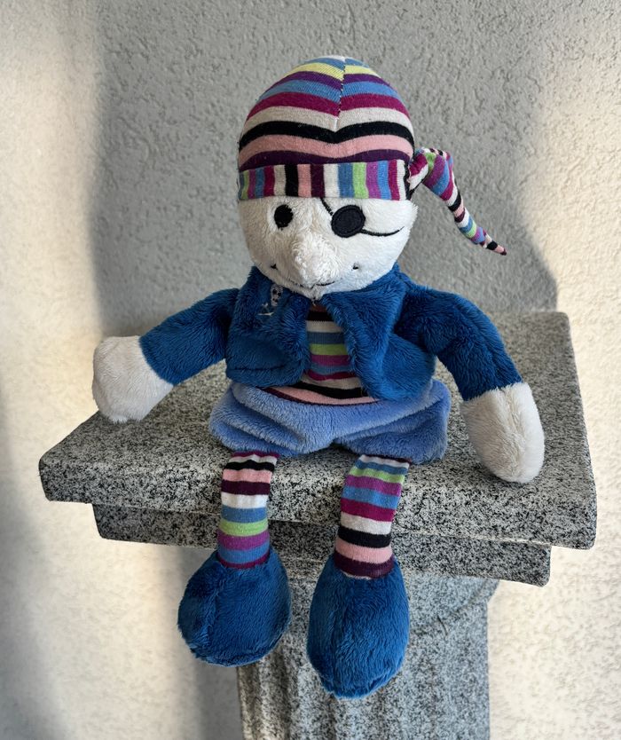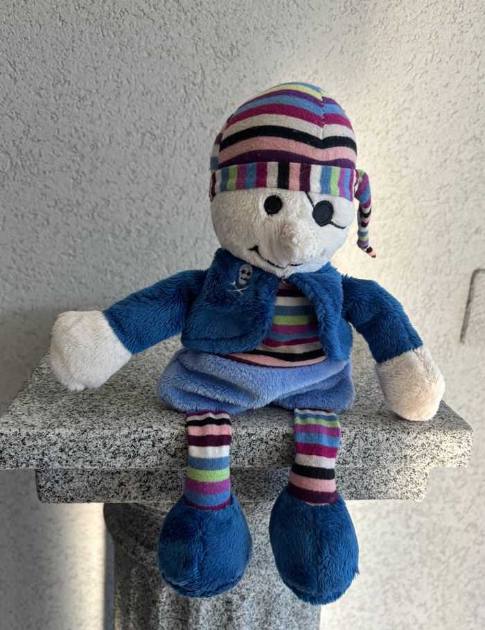 Poupée peluche pirate bleu doudou peluche mesure en photo avec le mètre Très bon état Voir TOUTES les photos