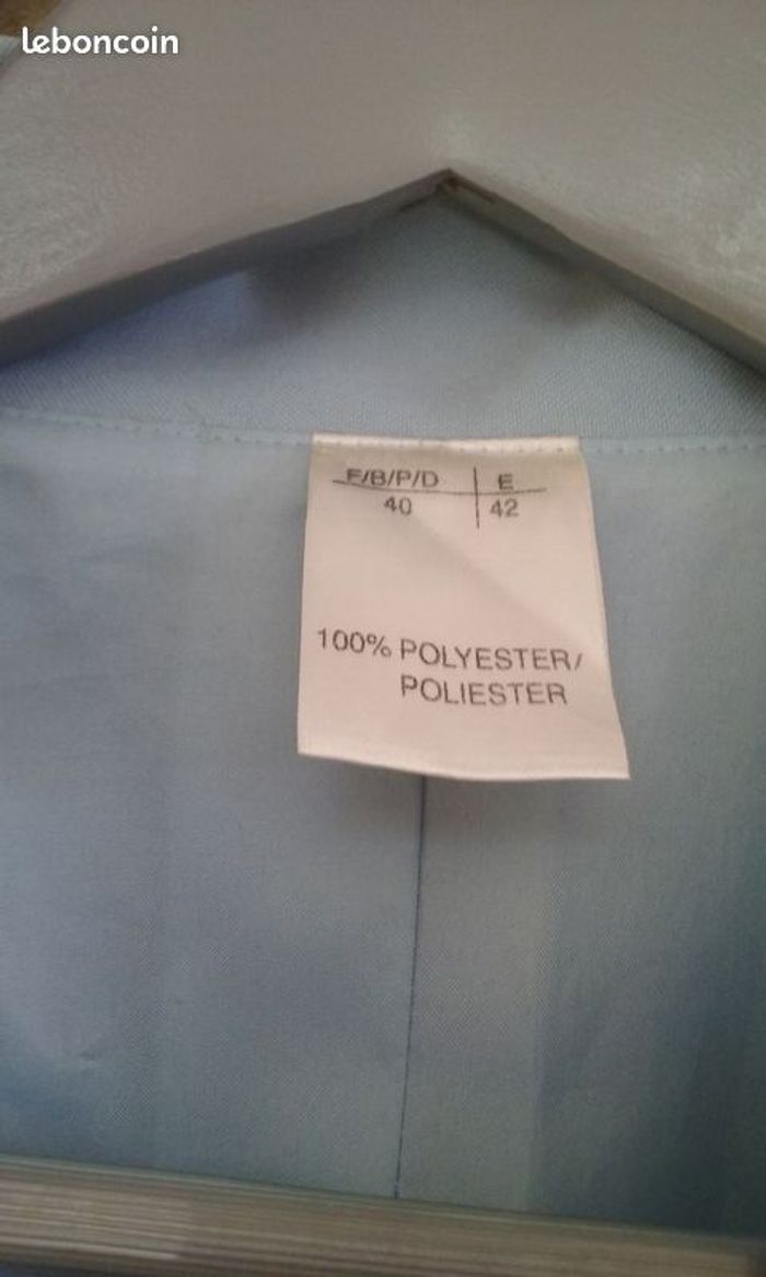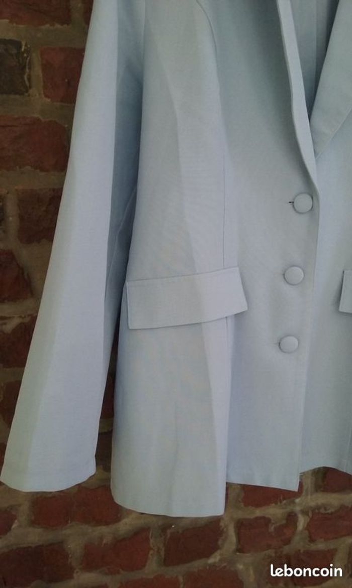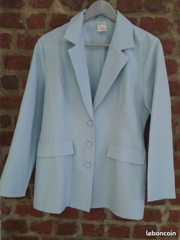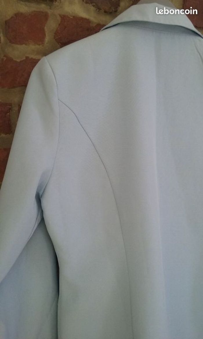 Très belle veste et jolie couleur ciel, je suis désolée mais je ne me souviens plus de la marque 😕! Taille 40