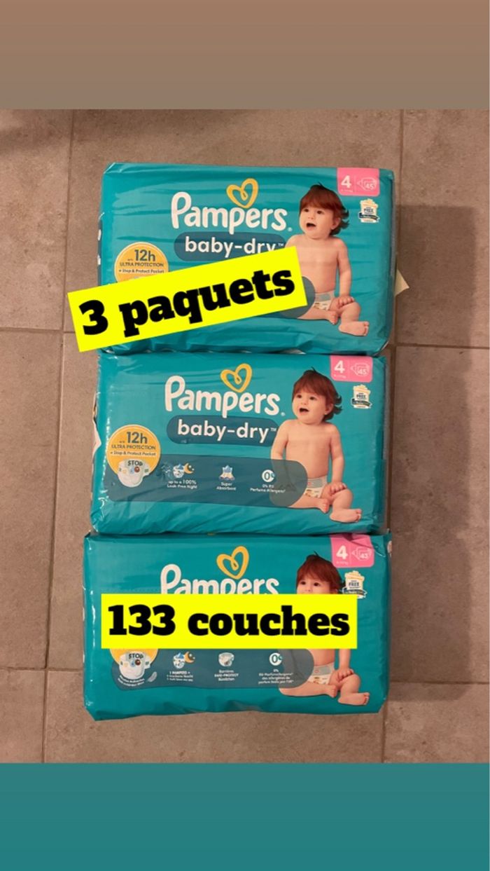 🚨 -25% avec le code : amour25 🛍️ Plusieurs lots disponibles dans mon dressing Pampers baby dry Taille 4 (9/14 kg) 📏 3 paquets soit 45 + 45 + 43 couches Total : 133 couches Neuf jamais ouvert Envoi rapide le jour même ________________ Autre lot disponible dans mon dressing couche : Pampers taille 3 Pampers taille 4 Pampers taille 4+ Pampers taille 5 Pampers pants Pampers harmonie