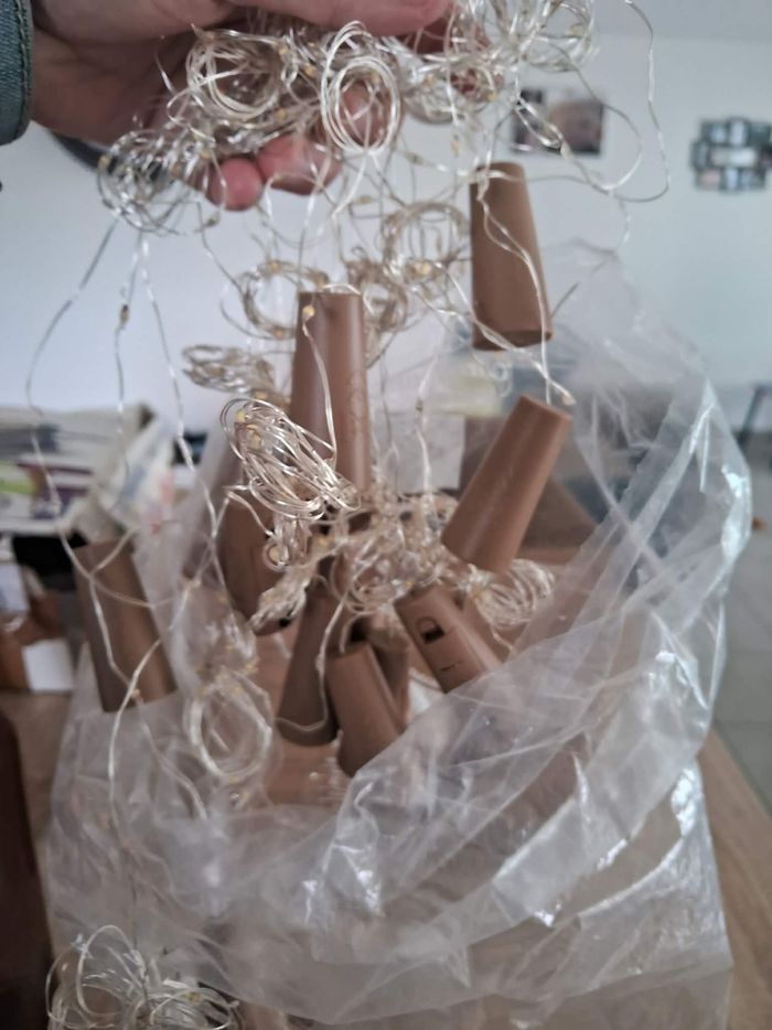 Lot de 27 Guirlandes lumineuses LED à insérer dans des bouteilles 🍾✨ Bouchon effet liège avec interrupteur intégré. Fil métallique fin et flexible avec micro LED lumière chaude (blanc chaud). Idéal pour : • déco de table • ambiance cosy • mariage / anniversaire • DIY et créations personnalisées Fonctionnent à piles (faciles à remplacer). Très bon état. Envoi rapide et soigné. N’hésitez pas si vous avez des questions 😊