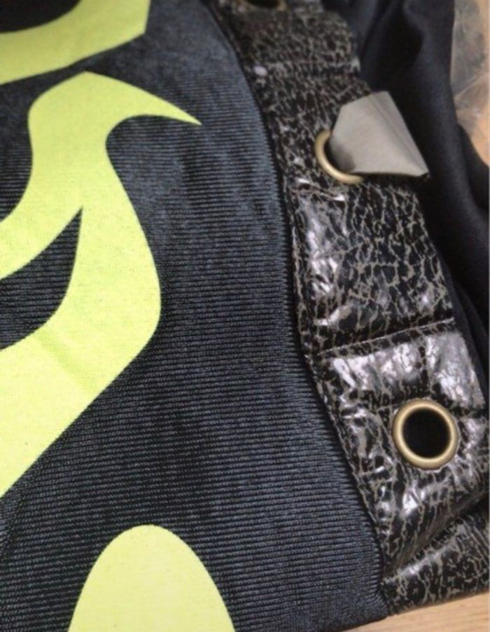 Très beau déguisement ninja noir marron et sérigraphie jaune ouvert légèrement pour les photos taille unique adulte , prévu pour convenir à toutes les tailles neuf