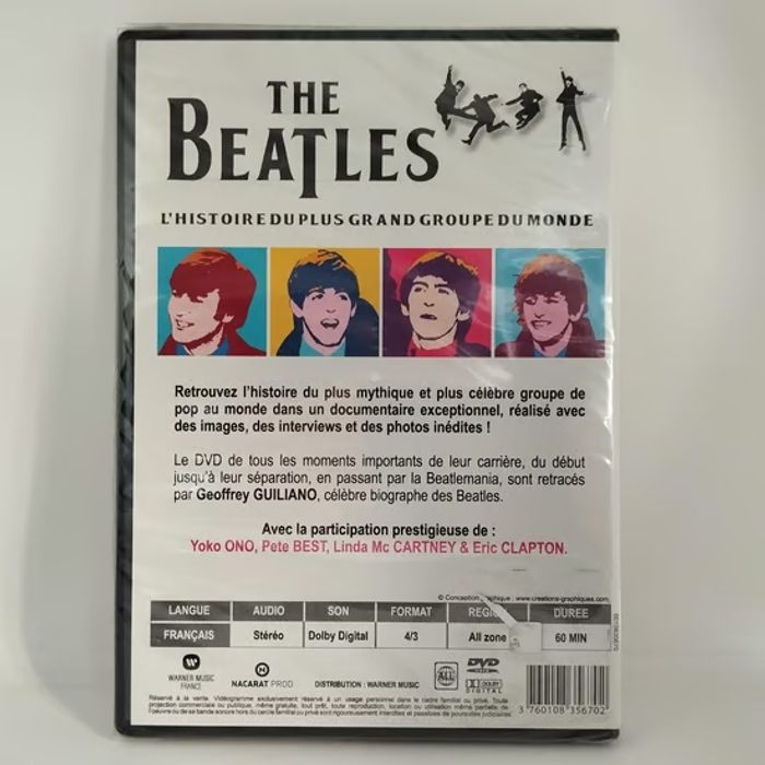 - Artiste : The Beatles - Titre : L'histoire du plus grand groupe du monde - Format : DVD - Etat : Neuf & Emballé - Genre : Documentaire / Rock - Pressage Pays : France - Label : Warner Music France - Code EAN : 3760108356702 - Année de sortie : 2012 📸 Consultez mes photos pour vérifier l'état de l'article. ✅ Votre achat est expédié sous 48h (sauf weekends et jours fériés) ✅ Mes Colis sont toujours soigneusement emballés et protégés ! ✅ Mon dressing est mis à jour régulièrement. Abonnez-vous à mon profil pour ne pas manquer les nouveaux arrivages. Sébastien.