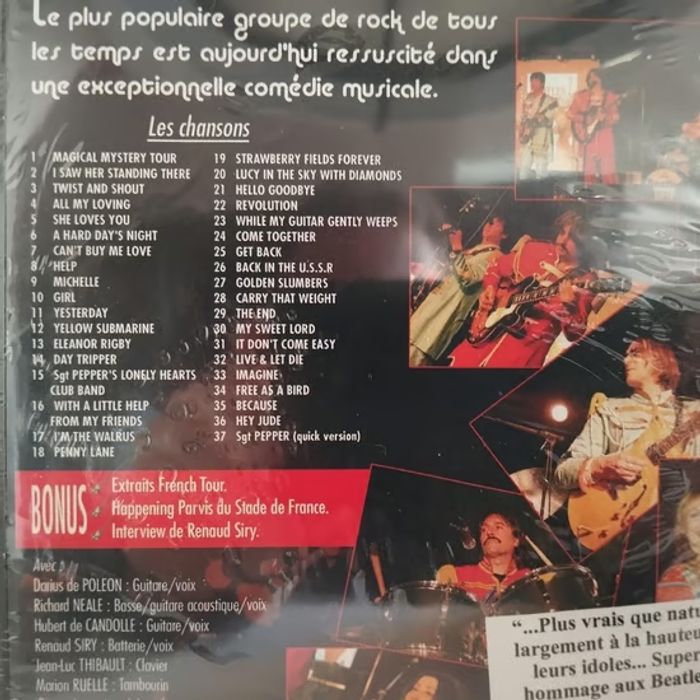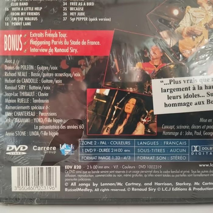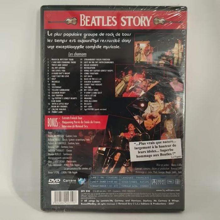 Le plus populaire groupe de rock de tous les temps est aujourd'hui ressuscité dans une exceptionnelle comédie musicale. 37 chansons, dont Yesterday, Yellow Submarine, Michelle, Imagine, She Loves You, A Hard Day's Night. - Artiste : The Rock-Opera ! - Titre : Beatles Story - Format : DVD - Etat : Neuf & Emballé - Genre : Rock / Comédie Musicale - Pressage Pays : France - Label : Carrere Group - Code EAN : 3550460023196 - Année de sortie : 2008 📸 Consultez mes photos pour vérifier l'état de l'article. ✅ Votre achat est expédié sous 48h (sauf weekends et jours fériés) ✅ Mes Colis sont toujours soigneusement emballés et protégés ! ✅ Mon dressing est mis à jour régulièrement. Abonnez-vous à mon profil pour ne pas manquer les nouveaux arrivages. Sébastien.
