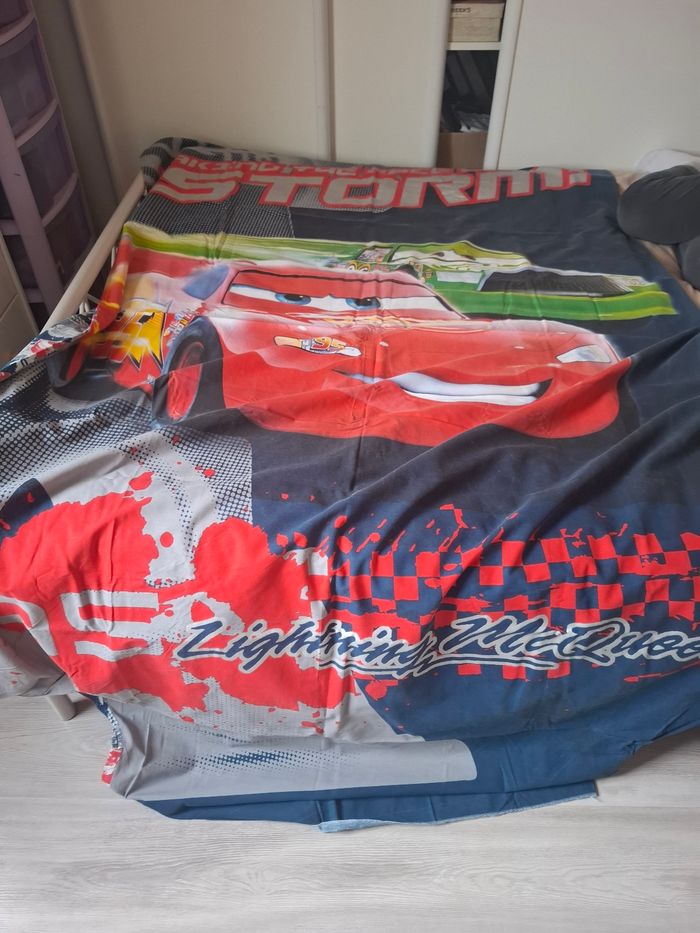 Je vend une housse de couette pour 1 personne avec taie d'oreiller. Une Mario 10 euros. Deux housses de couette pour 1 personne avec taie. Deux cars 20 euros les deux. ou 10euros 1 couette.