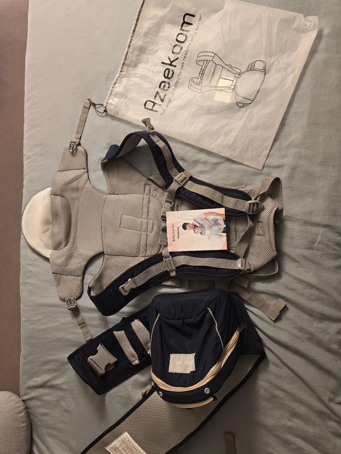 Porte bébé évolutif en excellent état bleu marine plusieurs position plusieurs possibilités de portage jusqu'à 36 mois en position assises sur la hanche