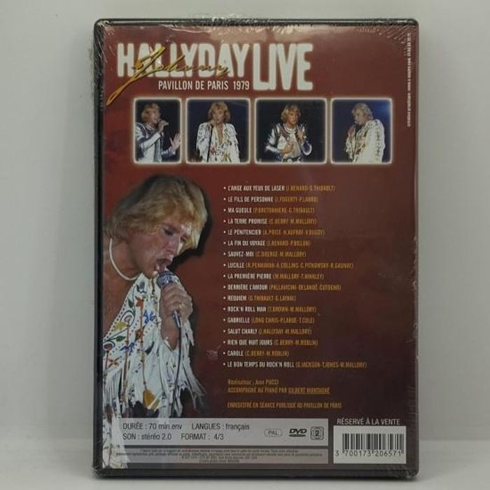 - Artiste : Johnny Hallyday - Titre : Live Pavillon De Paris 1979 - Format : DVD - Genre : Variété Française / Rock n Roll - Etat : Neuf Sous Blister - Durée : 70 min env. - Son : Stéréo 2.0 - Format 4/3 - Code EAN : 3700173206571 - Année de sortie : 2003 📸 Consultez mes photos pour vérifier l'état de l'article. ✅ Votre achat est expédié sous 48h (sauf weekends et jours fériés) ✅ Mes Colis sont toujours soigneusement emballés et protégés ! ✅ Mon dressing est mis à jour régulièrement. Abonnez-vous à mon profil pour ne pas manquer les nouveaux arrivages. Sébastien.