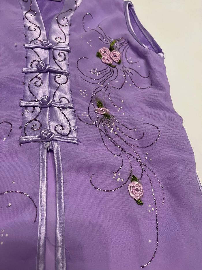 magnifique ensemble deux pièces d’inspiration traditionnelle (style Áo dài), de couleur violette, avec de superbes finitions. Il est parfait pour une occasion spéciale, une fête ou une cérémonie. Détails du produit : • Taille : 4 ans • Composition : 65 % Soie, 35 % Rayon (matière fluide et légèrement satinée) • Origine : Fabriqué au Vietnam • Couleur : Violet lavande / Lilas Description : • Haut : Tunique sans manches avec col officier, fermetures à brandebourgs (nœuds traditionnels) sur le devant. Décoré de jolies roses en relief, de broderies pailletées et de perles blanches. • Bas : Pantalon large assorti, avec une finition satinée brillante et une taille élastiquée pour plus de confort. État : neuf jamais porté Prix : 25 € ( acheté plus du double ) #TenueTraditionnelle #TenueDeFete #Enfant4ans #Soie #Violet.