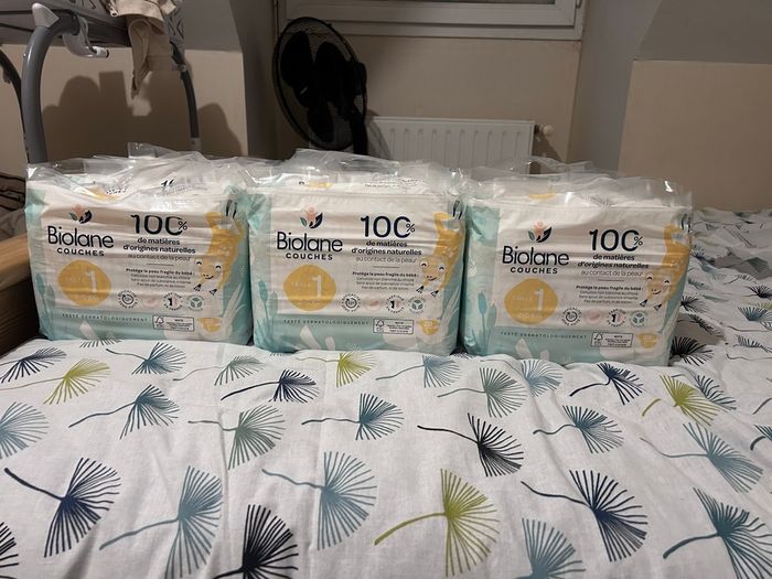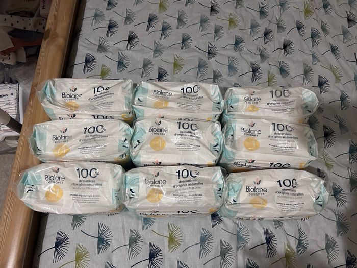 Je vend en lot 9 paquets de couches biolane taille 1 Jamais ouverte paquets neufs et en bon état