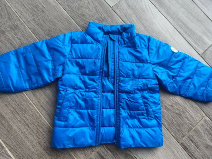 Doudoune idéale pour la mi-saison. Fermeture éclair. 2 poches extérieures. Avec housse de rangement, super compacte. Ne prend pas de place ! Top également en veste d'appoint à glisser dans un sac à langer , un sac à dos... Peut se glisser sous un imperméable. Couleur bleu roi / cobalt / bleu électrique tendance !! Trop mignon avec un jean ! Marque grain de blé boutique z génération 12 mois En parfait état Jean bleu en toile souple. Taille elastiquée. Hyper confortable. En très bon état. Marque obaibi. 12 mois Un Tee shirt manches longues avec capuche rayé gris/taupe et blanc. Marque grain de blé 12 mois. Très bon état Pull fin sans manche à capuche taupe Col V. taille 12 mois. 100% coton Mignon avec une petite chemise ou un tee shirt manches longues ! Marque grain de blé. Neuf !