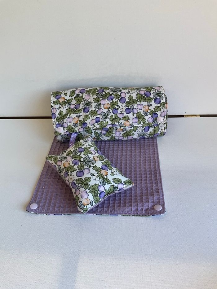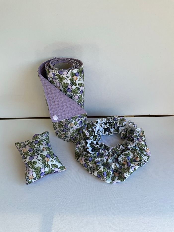 Ensemble de cuisine alternative écologique : 1 rouleau de 6 feuilles essuie tout lavable et réutilisable. Feuille environ 22x22 cm en tissu imprimé et éponge nid abeille pour plus d absorption. Les feuilles sont reliées entre elles par des pressions . 3 charlottes couvre plat 100% coton ( diam 18 cm pour les bols, 24 cm pour saladiers moyens et 32 cm pour grands saladiers ou plat à tarte ) . 1 éponge multi usage. Le tout lavable en machine à 40° et réutilisable.