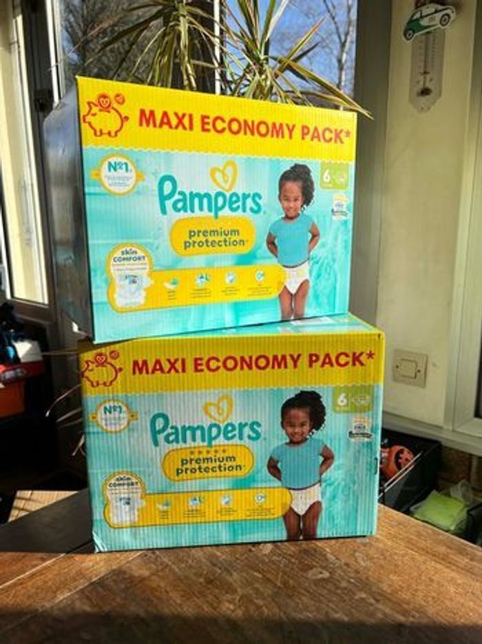 Lot : 2 cartons neufs. Variété : Pampers Premium protection en COUCHE. Taille 6 : Bébé 13 - 18 kg Quantité : 140 (2*70) #couchetaille6 #pamperspremiumprotection #pamperstaille6