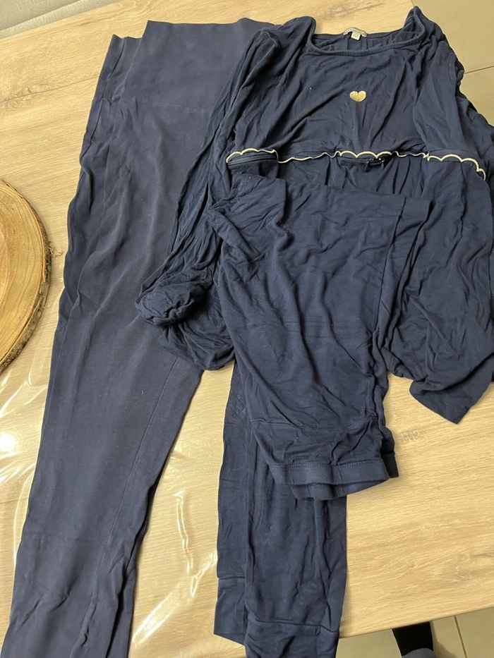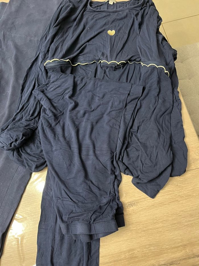 Lot vêtements grossesse composé d un legging couleur marine et d un pyjama 2 pièces avec ouverture pour allaitement Taille 46/48 marque Verbaudet et Premaman Réduction lot activée #magnounours_femme