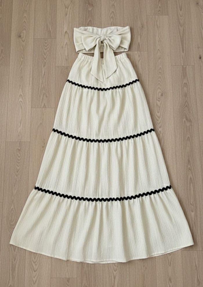 Ensemble 2 pièces bohème chic - Top bandeau à nœud et jupe longue à volants