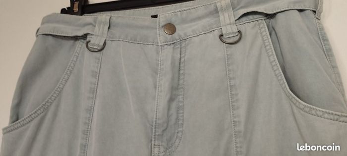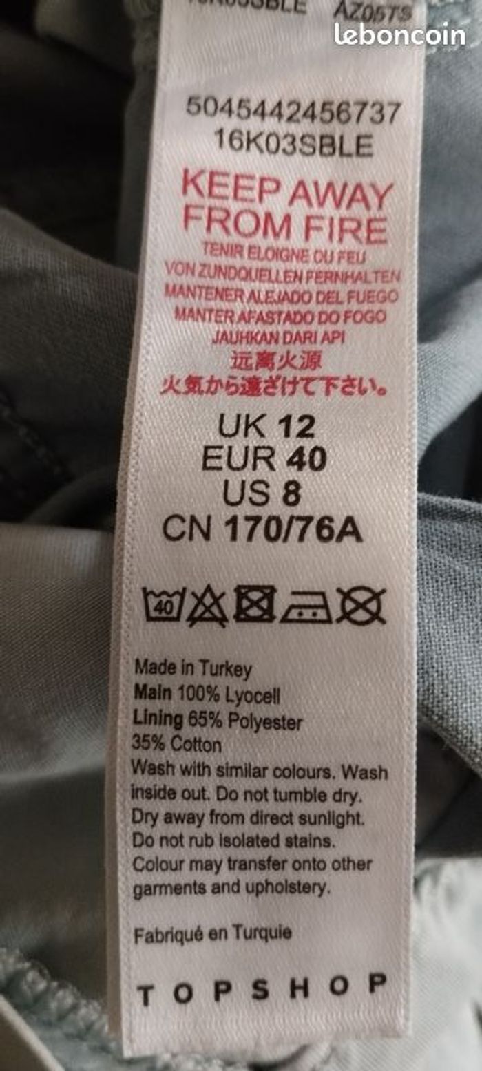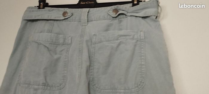 Pantalon large pour femme de chez Topshop, taille 40/42. 2 poches avant 2 arrière. Longueur 1m04. Taille 42cm. coloris Bleu ciel délavé ! coton et polyester