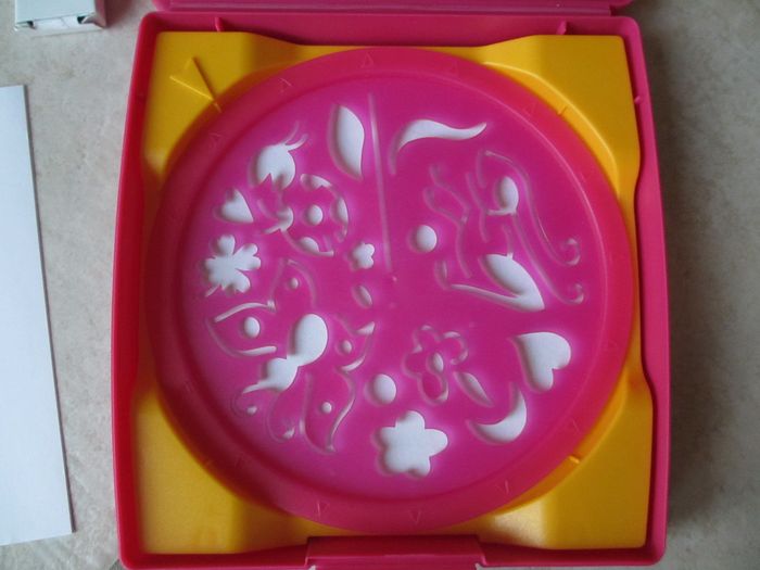 Mini coffret Mandala Designer Romantic Ravensburger (idéal pour les voyages) A partir de 6 ans. Contenu : 1 cadre, 1 planche de pochoirs, 5 feuilles de papier, 3 crayons de couleur et la boîte de transport. Très bon état (mais manque 5 feuilles et le feutre à dessiner).