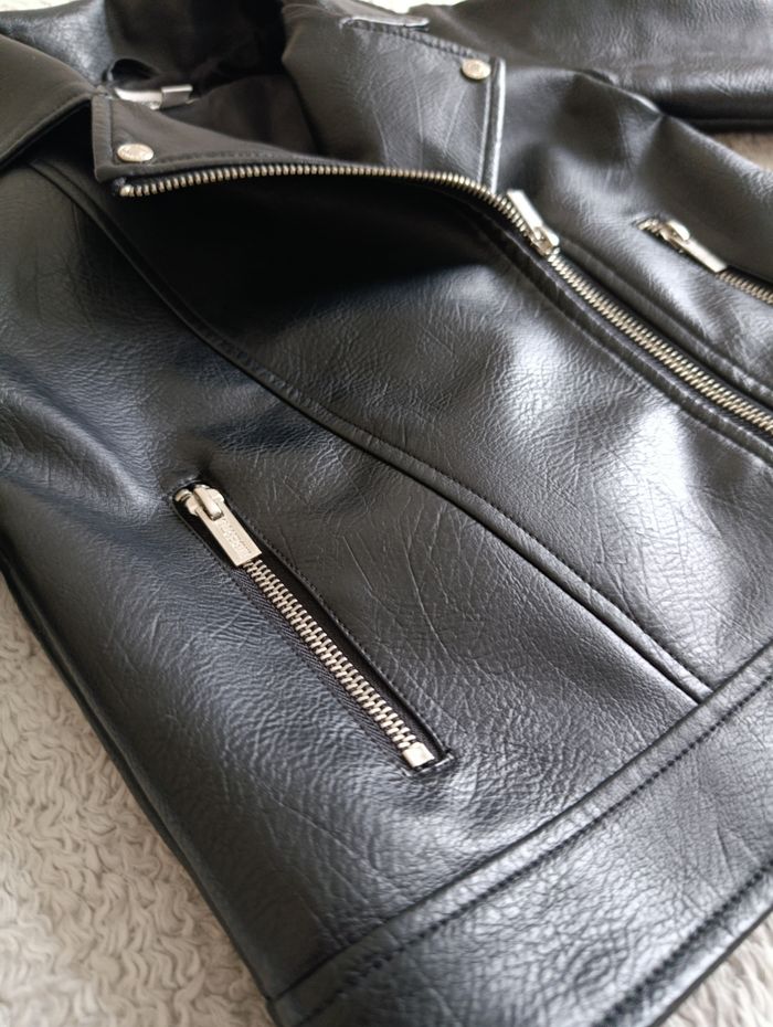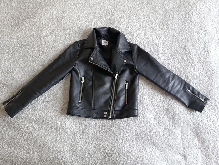 Très jolie veste style perfecto en simili cuir noir ✨ 🖤 Coupe moderne et tendance 🧥 Fermeture zippée asymétrique ✨ Détails zips argentés 🌸 Parfaite pour un look stylé en mi-saison 📏 Taille : 8 ans (128 cm) 🏷️ Marque : Liberto 👉 Très bon état comme neuve Idéale avec robe, jean ou jupe pour un look rock et chic 💫 📦 Envoi rapide et soigné 👉 Retrouvez d’autres vêtements enfant dans mon dressing