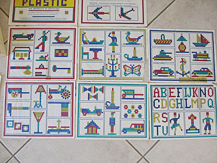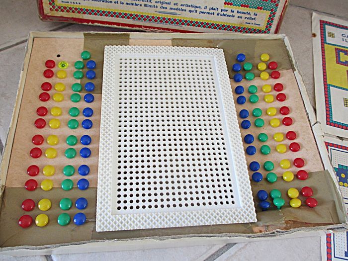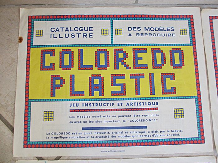 Jeu d’allumettes Coloredo P2 Dès 3 ans. Jeu instructif, original et artistique récompensé d’une médaille d’or à la Foire de Paris en 1946. Bon état (il manque 2 allumettes : 1 rouge et 1 jaune, les feuilles de modèles sont tachées ou abîmées et la boîte est très abîmée).