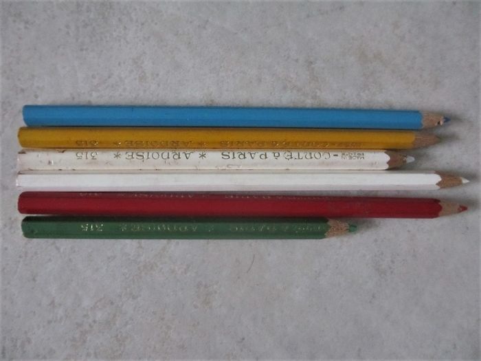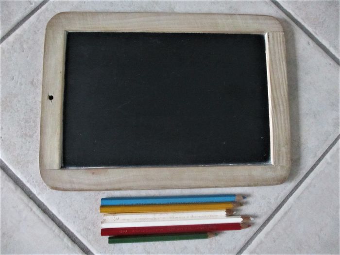 Ardoise en bois + 6 crayons à ardoise Conté - années 1980 Bon état.
