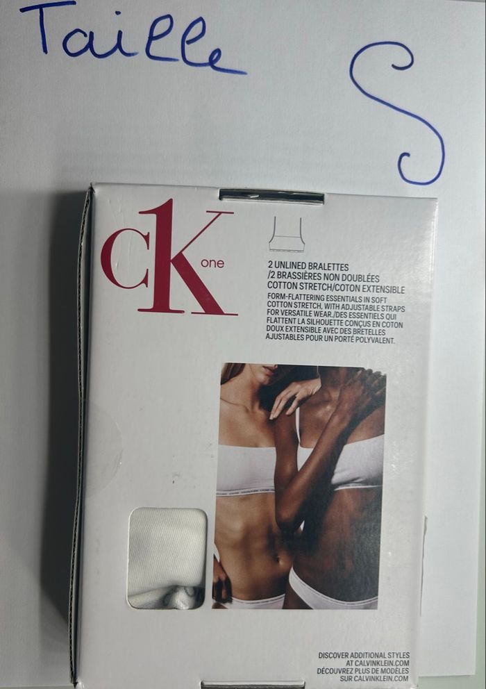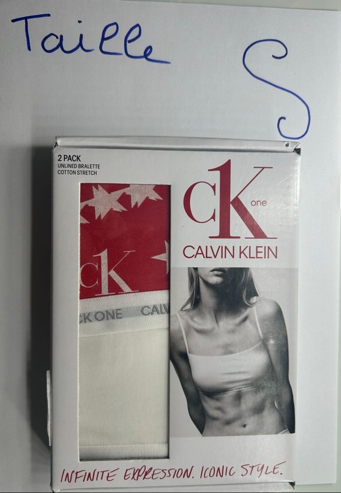 🌸 Lot de 2 brassières Calvin Klein – Taille S 🌸 Je vends plusieurs lots de brassières Calvin Klein (CK One) en taille S. Modèle coton stretch, très confortable, idéal au quotidien 🫶 ✨ Détails : • Marque : Calvin Klein • Modèle : CK One • Taille : S • Type : Brassières non doublées (unlined bralette) • Matière : Coton stretch • État : Neuf (vendu en pack de 2, jamais porté) 🎨 rouge et blanc 💰 Prix : • 10€ à l’unité • Possibilité d’achat en lot (me contacter pour le prix du lot) 📦 Envoi rapide et soigné. N’hésitez pas à me contacter si vous avez des questions ou si vous souhaitez choisir un modèle en particulier 😊
