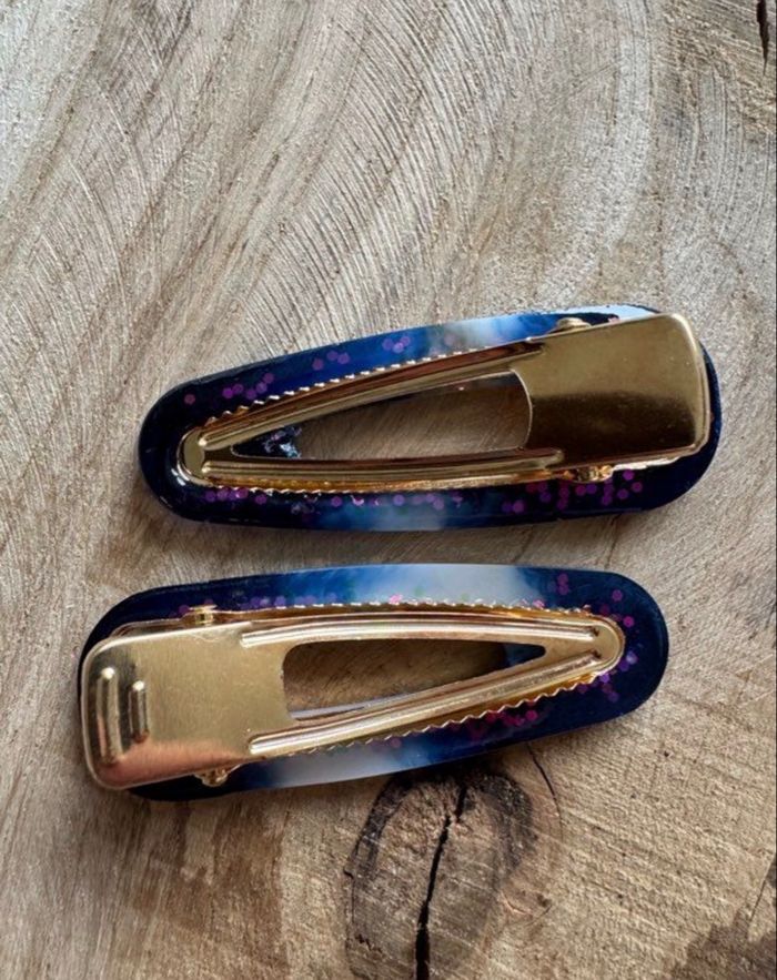 Lot de 2 barrettes bleu et blanc pailletées Parfait état Jamais portées