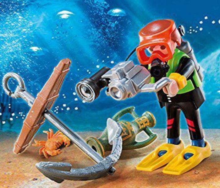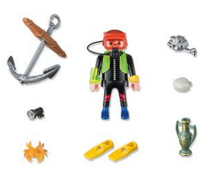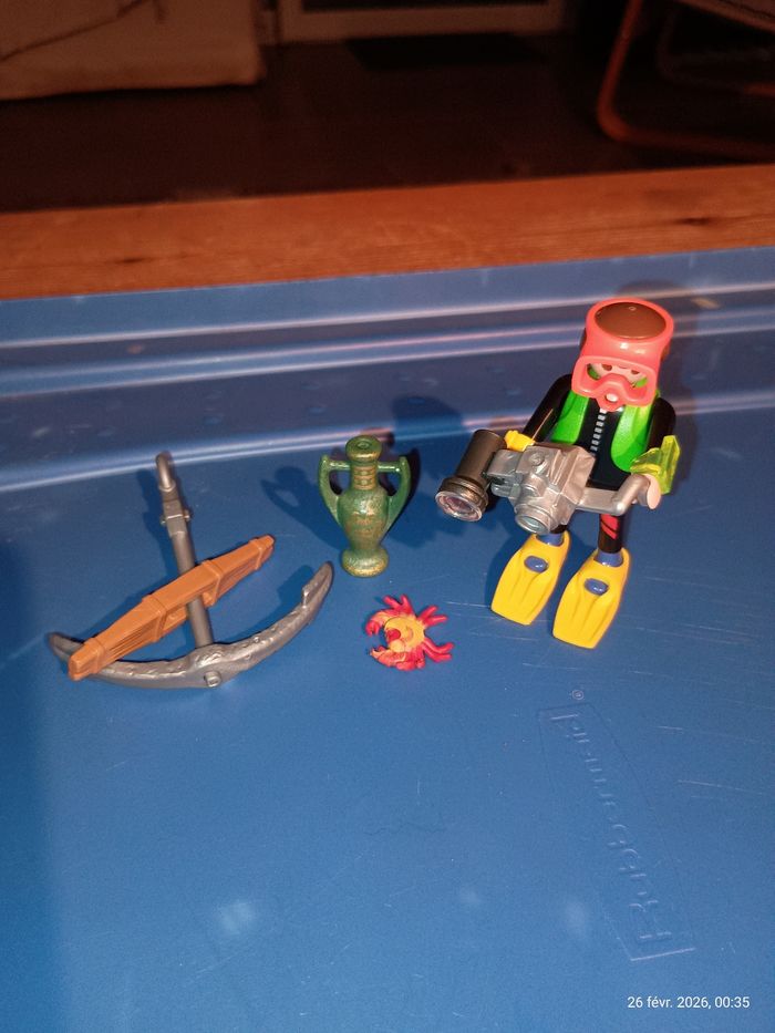 Je vends ce set Playmobil 4786 plongeur, parfait pour les enfants en quête d'aventures sous-marines ! - Type de produit : Figurines - Marque : Playmobil - Référence du set : 4786 - Thème : Plongeur - Âge recommandé : De 4 à 6 ans - Composition du lot : 1 figurine plongeur, 1 paire de palmes jaunes, 1 masque de plongée, 1 trophée doré, 1 ancre, 1 créature marine, accessoires de plongée - Matière : Plastique Très bon état mais il manque la coquille st jacques N'hésitez pas à me contacter pour plus d'infos ou de photos !