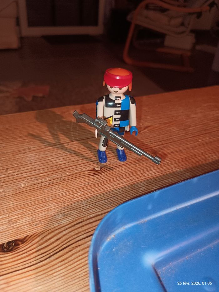 Je vends cette figurine Playmobil 5202 - Tireur à la carabine, parfait pour les enfants qui aiment les aventures et les jeux de rôle ! - Type de produit : Figurine - Marque : Playmobil - Référence du set : 5202 - Âge recommandé : De 4 à 6 ans - Composition du lot : 1 figurine, 1 carabine, 1 accessoire (casquette/couvre-chef rouge) - Matière : Plastique Très bon état mais il manque la cible N'hésitez pas à me contacter pour plus d'infos ou de photos !