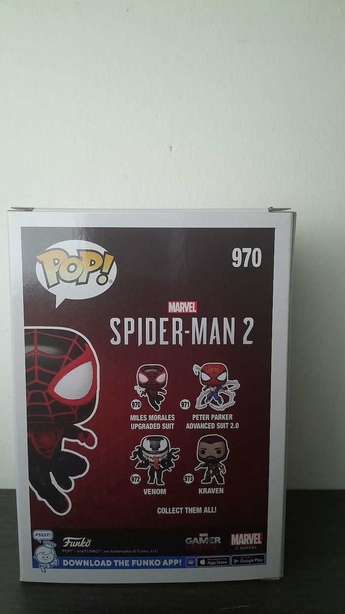 Funko Pop Miles Morales #970 Gamerverse Spider-Man 2. Jamais ouverte, état impeccable. Boîte propre, aucun défaut majeur. Produit original Funko. Envoi rapide et bien protégé.