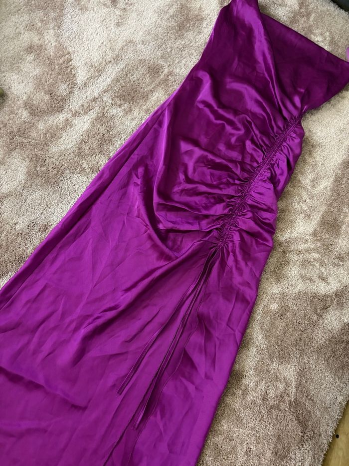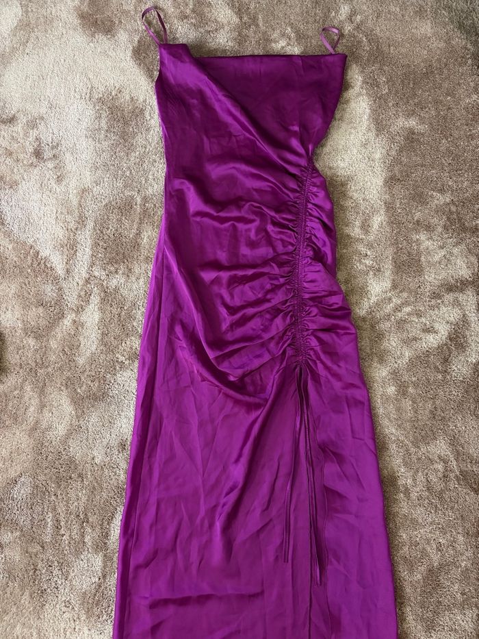 Robe de soirée en satin violet fuchsia avec un décolleté tombant - fente à l’avant Taille : M🩷 📦envoie rapide et soigner en 24 h ✔️peu porté ✔️aucun défaut ✔️entretien facile