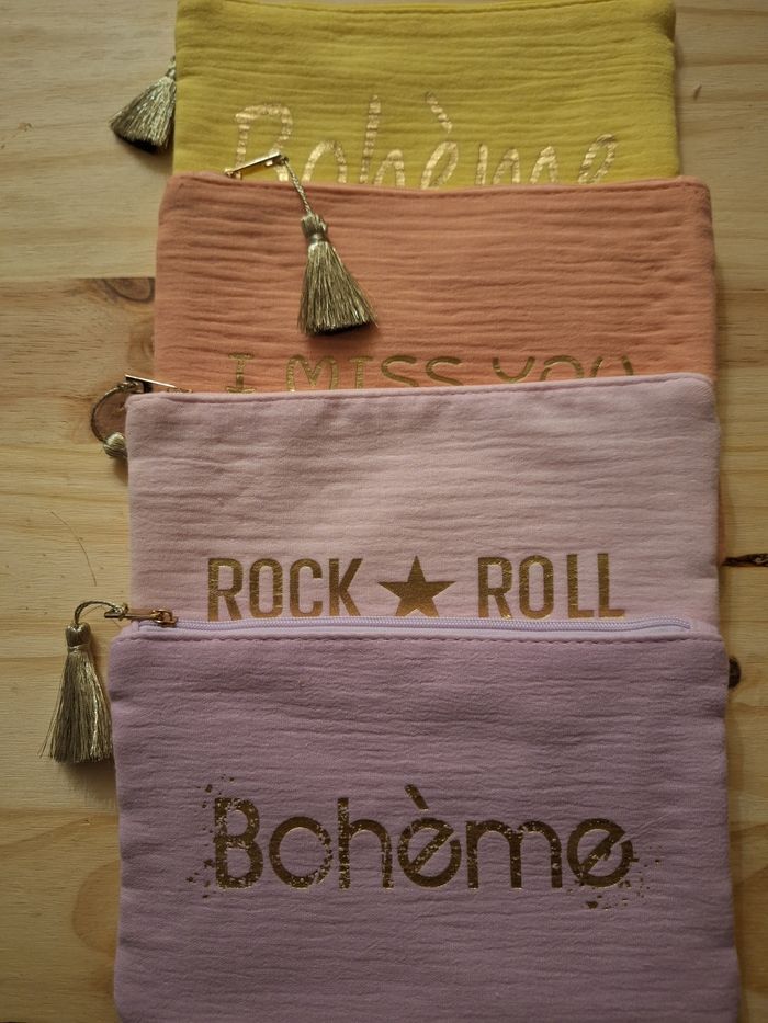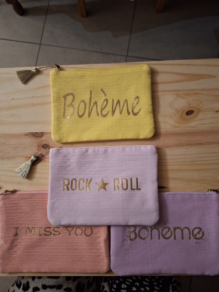 4 trousses neuve sans étiquette Dimensions 19 cm de longueur 13 cm de large Lilas Rose pâle Corail Jaune