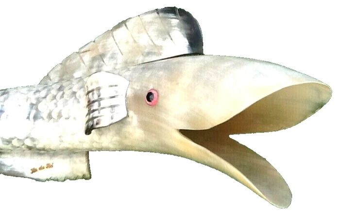 Années 1960  Grande Sculpture   Véritable corne de bovin  Poisson « Souvenir de bord de mer »   - photo numéro 5