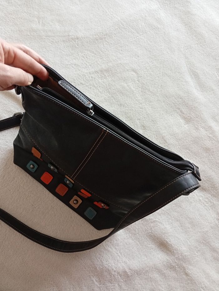 Remise sur lot activé. Sac bandoulière couleur noir et multicolore en très bon état. Plusieurs poches à l' intérieur et une poche zippée derrière. Marque : Ixoo Il y a une marque/ tâche conformément aux photos, mais pas trop visible une fois porté. Dimensions approximatives: 25*27*9cm En synthétique. #sacencuirsynthetique #sacbzndouliere #sacbandoulierenoir #sacbandoulièremulticolore #sacixoo #sacbandoulièreixoo