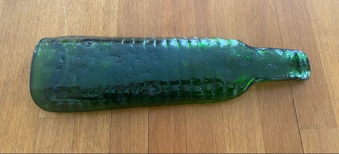 Planche de Présentation Bouteille Plate en Verre. - Cette bouteille de vin a été fondue, recyclée et réalisée à la main. - Offrant originalité et durabilité eco-responsible. - Idéale pour vos apéritifs, tapas, fromages ou desserts… - Couleur : Vert foncé. - Longueur : Environ 30 cm. - Largeur : environ 9 cm. - Poids : 553 g. - D'un artisan à Coulon, Marais Poitevin. - Je peux poster par Mondial Relais ou shop2shop - Chronopost uniquement. - Ou récupéré à 79160 Coulonges sur l'autize.