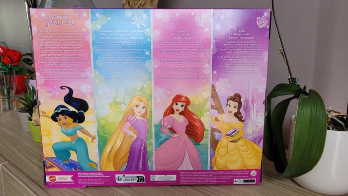 Coffret de 4 poupées princesses disney neuf. Jamais ouvert.