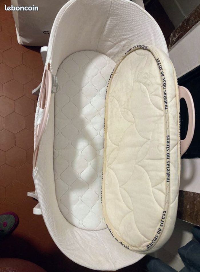 Je vends ce super berceau, couffin, Tommee Tippee rose avec un super matelas « No stress » Made in France en plus car celui d’origine était trop fin à mon goût. Je vends également un support, qui peut être fixe ou à bascule selon que l’on met les cales. L’utilisation est très simple. Très bon état. 50€ le tout. Je donne 3 draps avec tout cela. N'hésitez pas à me contacter pour plus d'informations !