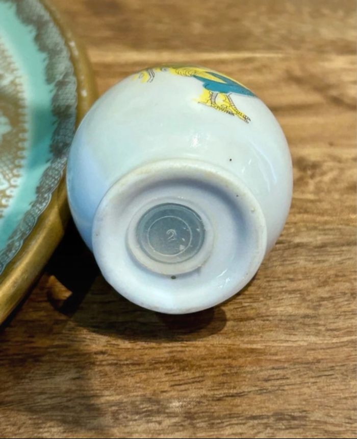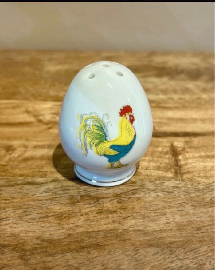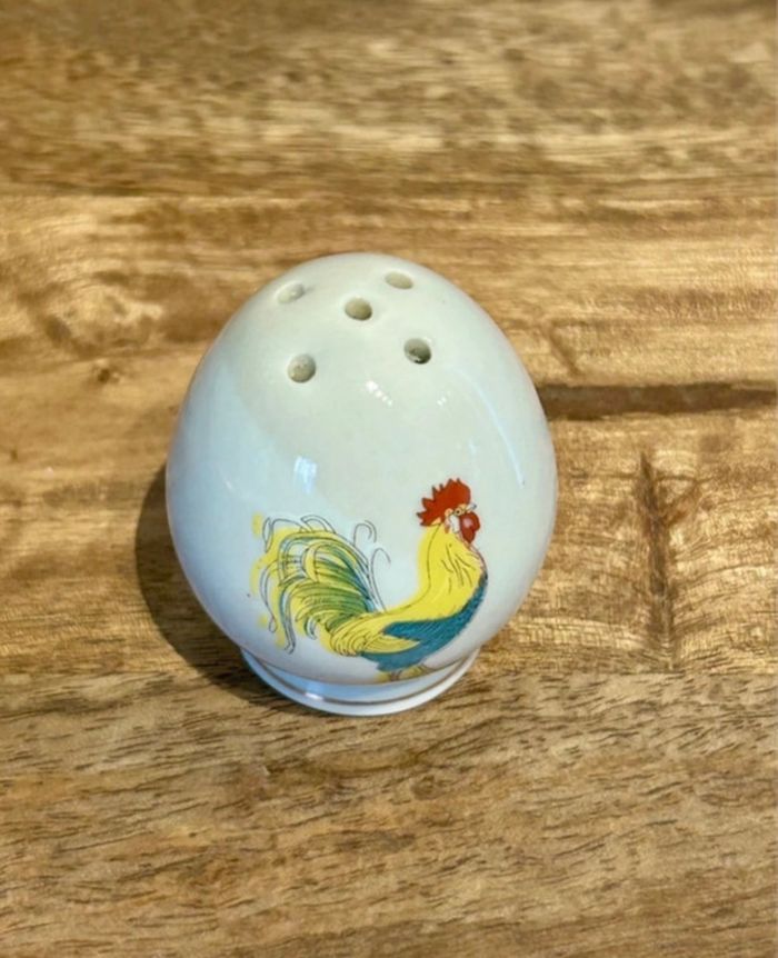 Très jolie salière vintage en forme d'œuf Motif coq Hauteur 6 cm