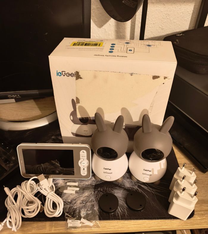 Bonjour vend babyphone double caméra écran LCD 5" rotation 360° détection mouvement bruit vision jour et nuit