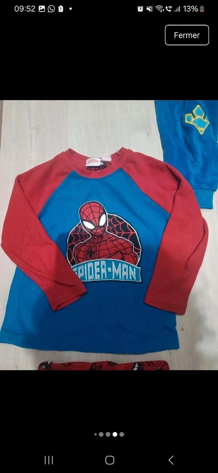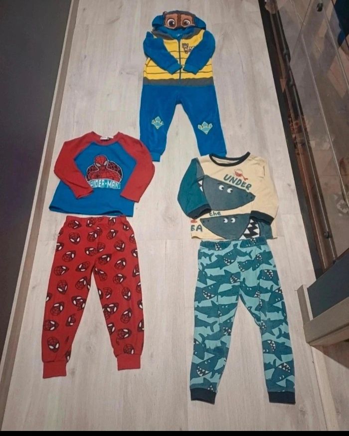 🦈 1 pyjama requin Du Pareil Au Même – 5 ans Porté 1 à 2 fois, état impeccable. 🕷️ 1 pyjama Spider-Man – 3/4 ans (104 cm) Très bon état. 🐾 1 pyjama combinaison Pat’ Patrouille avec capuche – 3/4 ans (104 cm) Porté 2 à 3 fois, aucun trou, très bon état. 🏡 Maison non fumeur, première main, pas d’animaux. 👕 D’autres vêtements garçon sur #laul57garcon4ans
