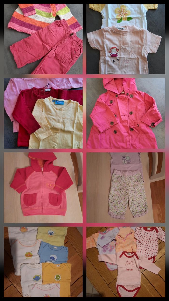 Lot fille 6 mois Et 9 mois pour les tee-shirts manches longues et courtes. Lot comprenant 1 pull et 1 pantalon DPAM 2 tee-shirts manches courtes 3 tee-shirts manches longues 1 coupe vent DPAM 1 gilet zippé à capuche 1 ensemble body et son petit legging Une douzaine de bodies. Petit prix Portés Bon état