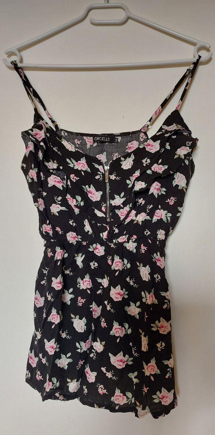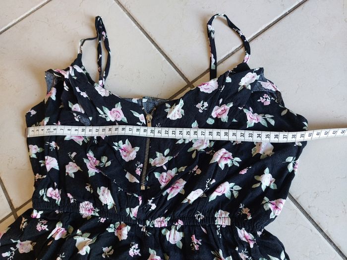 Top fluide à bretelles réglables Pour ado / femme Marque : Orcelly Noir + Motifs fleurs Taille M - L 100% viscose Lavable à 30°C Bon état