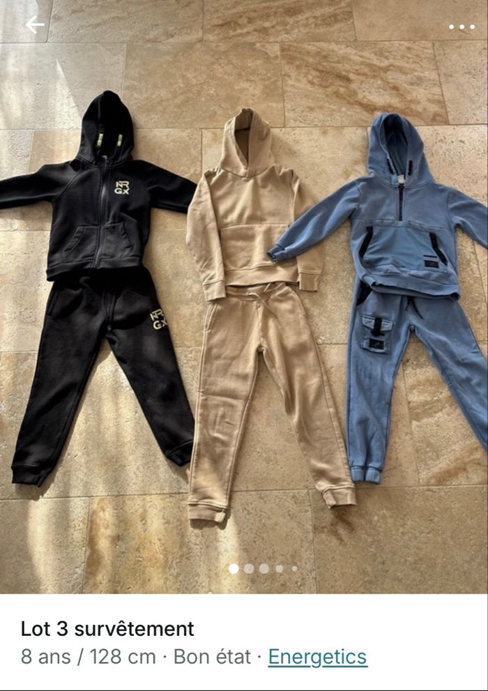 Lot 3 survêtement enfants 8 ans bon état léger accroc voir photo